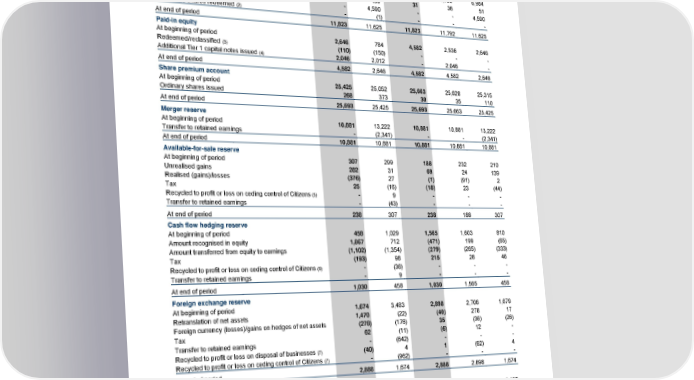 Statutory results Condensed consolidated statement of changes in equity for the period ended 31 December 2016 Year ended Quarter ended 31 December 31 December 31 December 30 September 31 December 2016 2015 2016 2016 2015 £m £m £m £m £m Called-up share capital At beginning of period 11,625 6,877 11,792 11,756 6,984 Ordinary shares issued 198 159 31 36 51 Conversion of B shares (1) - 4,590 - - 4,590 Preference shares redeemed (2) - (1) - - - At end of period 11,823 11,625 11,823 11,792 11,625 Paid-in equity At beginning of period 2,646 784 4,582 2,536 2,646 Redeemed/reclassified (3) (110) (150) - - - Additional Tier 1 capital notes issued (4) 2,046 2,012 - 2,046 - At end of period 4,582 2,646 4,582 4,582 2,646 Share premium account At beginning of period 25,425 25,052 25,663 25,628 25,315 Ordinary shares issued 268 373 30 35 110 At end of period 25,693 25,425 25,693 25,663 25,425 Merger reserve At beginning of period 10,881 13,222 10,881 10,881 13,222 Transfer to retained earnings - (2,341) - - (2,341) At end of period 10,881 10,881 10,881 10,881 10,881 Available-for-sale reserve At beginning of period 307 299 188 232 210 Unrealised gains 282 31 69 24 139 Realised (gains)/losses (376) 27 (1) (91) 2 Tax 25 (16) (18) 23 (44) Recycled to profit or loss on ceding control of Citizens (5) - 9 - - - Transfer to retained earnings - (43) - - - At end of period 238 307 238 188 307 Cash flow hedging reserve At beginning of period 458 1,029 1,565 1,603 810 Amount recognised in equity 1,867 712 (471) 199 (65) Amount transferred from equity to earnings (1,102) (1,354) (279) (265) (333) Tax (193) 98 215 28 46 Recycled to profit or loss on ceding control of Citizens (6) - (36) - - - Transfer to retained earnings - 9 - - - At end of period 1,030 458 1,030 1,565 458 Foreign exchange reserve At beginning of period 1,674 3,483 2,898 2,706 1,679 Retranslation of net assets 1,470 (22) (40) 278 17 Foreign currency (losses)/gains on hedges of net assets (278) (176) 35 (36) (26) Tax 62 (11) (6) 12 - Transfer to retained earnings - (642) - - - Recycled to profit or loss on disposal of businesses (7) (40) 4 1 (62) 4 Recycled to profit or loss on ceding control of Citizens (7) - (962) - - - At end of period 2,888 1,674 2,888 2,898 1,674 Capital redemption reserve At beginning of period 4,542 9,131 4,542 4,542 9,132 Conversion of B shares (1) - (4,590) - - (4,590) Preference shares redeemed (2) - 1 - - - At end of period 4,542 4,542 4,542 4,542 4,542 Refer to page 53 for footnotes. 51 RBS – Annual results 2016