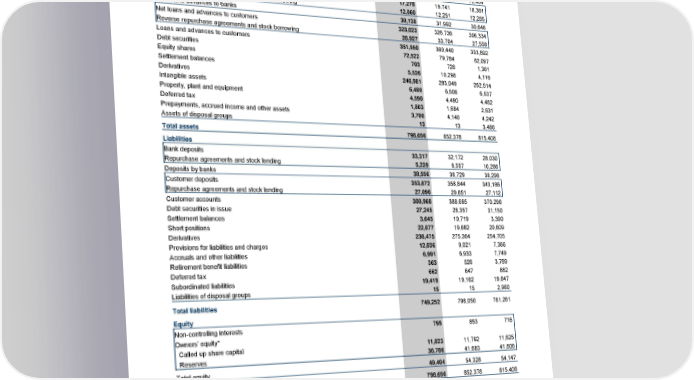 Statutory results Condensed consolidated balance sheet as at 31 December 2016 31 December 30 September 31 December 2016 2016 2015 £m £m £m Assets Cash and balances at central banks 74,250 69,254 79,404 Net loans and advances to banks 17,278 19,741 18,361 Reverse repurchase agreements and stock borrowing 12,860 12,251 12,285 Loans and advances to banks 30,138 31,992 30,646 Net loans and advances to customers 323,023 326,736 306,334 Reverse repurchase agreements and stock borrowing 28,927 33,704 27,558 Loans and advances to customers 351,950 360,440 333,892 Debt securities 72,522 79,784 82,097 Equity shares 703 728 1,361 Settlement balances 5,526 10,298 4,116 Derivatives 246,981 283,049 262,514 Intangible assets 6,480 6,506 6,537 Property, plant and equipment 4,590 4,490 4,482 Deferred tax 1,803 1,684 2,631 Prepayments, accrued income and other assets 3,700 4,140 4,242 Assets of disposal groups 13 13 3,486 Total assets 798,656 852,378 815,408 Liabilities Bank deposits 33,317 32,172 28,030 Repurchase agreements and stock lending 5,239 6,557 10,266 Deposits by banks 38,556 38,729 38,296 Customer deposits 353,872 358,844 343,186 Repurchase agreements and stock lending 27,096 29,851 27,112 Customer accounts 380,968 388,695 370,298 Debt securities in issue 27,245 28,357 31,150 Settlement balances 3,645 10,719 3,390 Short positions 22,077 19,882 20,809 Derivatives 236,475 275,364 254,705 Provisions for liabilities and charges 12,836 9,021 7,366 Accruals and other liabilities 6,991 6,933 7,749 Retirement benefit liabilities 363 526 3,789 Deferred tax 662 647 882 Subordinated liabilities 19,419 19,162 19,847 Liabilities of disposal groups 15 15 2,980 Total liabilities 749,252 798,050 761,261 Equity Non-controlling interests 795 853 716 Owners’ equity* Called up share capital 11,823 11,792 11,625 Reserves 36,786 41,683 41,806 Total equity 49,404 54,328 54,147 Total liabilities and equity 798,656 852,378 815,408 *Owners’ equity attributable to: Ordinary shareholders 41,462 46,328 47,480 Other equity owners 7,147 7,147 5,951 48,609 53,475 53,431 The parent company distributable reserves at 31 December 2016 were £8.0 billion (30 September 2016 - £7.2 billion; 31 December 2015 - £16.3 billion). 50 RBS – Annual results 2016