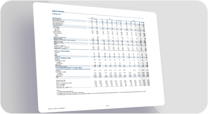 Segment Performance Ulster Bank RoI 2014 2015 2016 Q4 Full year Q1 Q2 Q3 Q4 Full year Q1 Q2 Q3 Q4 Full year Income statement €m €m €m €m €m €m €m €m €m €m €m €m Net interest income 142 579 128 131 126 118 503 136 118 125 122 501 Net fees and commissions 32 116 29 29 30 28 116 27 27 25 21 100 Other non-interest income 18 54 28 23 72 16 139 38 27 21 14 100 Own credit adjustments -- -- -- -- -- -- -- 4 -- -- (1) 3 Non-interest income 50 170 57 52 102 44 255 69 54 46 34 203 Total income 192 749 185 183 228 162 758 205 172 171 156 704 Direct expenses - staff costs (55) (203) (54) (55) (56) (55) (220) (66) (58) (62) (66) (252) - other costs (30) (104) (25) (24) (30) (37) (116) (15) (3) (23) (27) (68) Indirect expenses (67) (224) (57) (59) (67) (68) (251) (55) (55) (53) (76) (239) Restructuring costs - direct -- 10 -- (22) (4) 9 (17) (8) (23) (9) (6) (46) - indirect 2 (26) 1 (1) (3) (1) (4) -- (1) (3) 2 (2) Litigation and conduct costs 24 24 -- 13 -- 5 18 -- (118) -- (93) (211) Operating expenses (126) (523) (135) (148) (160) (147) (590) (144) (258) (150) (266) (818) Operating profit/(loss) before impairment releases 66 226 50 35 68 15 168 61 (86) 21 (110) (114) Impairment releases 89 380 33 72 75 14 194 17 17 48 56 138 Operating profit/(loss) 155 606 83 107 143 29 362 78 (69) 69 (54) 24 Memo: Total income - adjusted (1) 192 749 185 183 228 162 758 201 172 171 157 701 Operating expenses - adjusted (2) (152) (531) (136) (138) (153) (160) (587) (136) (116) (138) (169) (559) Operating profit - adjusted (1,2) 129 598 82 117 150 16 365 82 73 81 44 280 Analysis of income by business Corporate 62 230 50 47 52 53 202 73 55 49 38 215 Retail 93 361 103 109 126 105 443 130 121 112 116 479 Other 37 158 32 27 50 4 113 2 (4) 10 2 10 Total income 192 749 185 183 228 162 758 205 172 171 156 704 Analysis of impairments by sector Mortgages (50) (212) (25) (53) (51) 29 (100) 2 (3) 75 (39) 35 Commercial real estate - investment (6) (10) 1 4 (2) 4 7 (6) -- (23) (1) (30) - development 5 (3) -- 5 (3) (2) -- (2) (6) (16) (1) (25) Other lending (38) (155) (9) (28) (19) (45) (101) (11) (8) (84) (15) (118) Total impairment (releases) (89) (380) (33) (72) (75) (14) (194) (17) (17) (48) (56) (138) Loan impairment charge/release as % of gross customer loans and advances (excluding reverse repurchase agreements) by sector Mortgages (1,0%) (1,1%) (0,5%) (1,1%) (1,1%) 0,6% (0,5%) -- (0,1%) 1,6% (0,9%) 0,2% Commercial real estate - investment (1,8%) (0,8%) 0,3% 1,2% (0,7%) 1,8% 0,8% (2,0%) -- (8,4%) (0,5%) (3,8%) - development 6,7% (1,0%) -- 5,0% (3,0%) (2,7%) -- (1,1%) (4,8%) (12,8%) (1,3%) (8,3%) Other lending (2,9%) (3,0%) (0,8%) (2,3%) (1,5%) (3,4%) (1,9%) (0,8%) (0,6%) (6,6%) (1,3%) (2,6%) Total (1,3%) (1,4%) (0,5%) (1,1%) (1,2%) (0,2%) (0,8%) (0,3%) (0,3%) (0,8%) (1,0%) (0,6%) Performance ratios Return on equity (3) 19,8% 18,6% 10,1% 12,6% 16,7% 3,0% 10,6% 8,8% (8,2%) 7,8% (5,8%) 0,7% Return on equity - adjusted (1,2,3) 16,4% 18,4% 9,9% 13,9% 17,5% 1,4% 10,6% 9,2% 9,0% 9,9% 5,4% 8,4% Net interest margin 1,90% 1,92% 1,66% 1,65% 1,52% 1,45% 1,57% 1,75% 1,54% 1,62% 1,59% 1,62% Cost:income ratio 64% 70% 72% 81% 70% 92% 78% 70% 150% 90% 165% 116% Cost:income ratio - adjusted (1,2) 78% 71% 73% 75% 67% 101% 78% 67% 67% 80% 106% 80% Notes: (1) Excluding own credit adjustments. (2) Excluding restructuring costs, litigation and conduct costs. (3) Return on equity is based on segmental operating profit after tax adjusted for preference dividends divided by average notional equity based on 11% of the monthly average of segmental RWAes, assuming 15% tax rate. RBS Group - Q4 2016 Financial Supplement Page 28