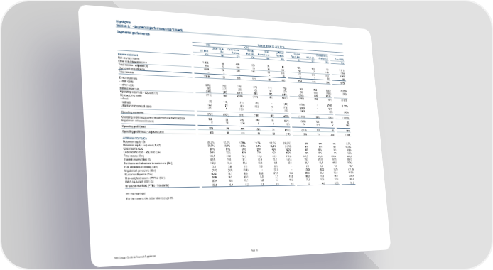 Highlights Section 3.1 - Segmental performance (continued) Segmental performance Quarter ended 30 June 2015 PBB CPB Ulster Bank Commercial Private RBS NatWest Capital Central items UK PBB RoI Banking Banking International Markets Resolution W&G (1) & other (2) Total RBS £m £m £m £m £m £m £m £m £m £m Income statement Net interest income 1 035 95 499 109 76 16 124 163 98 2 215 Other non-interest income 284 37 369 52 16 327 53 47 169 1 354 Total income - adjusted (3) 1 319 132 868 161 92 343 177 210 267 3 569 Own credit adjustments -- -- -- -- -- 62 77 -- 29 168 Total income 1 319 132 868 161 92 405 254 210 296 3 737 Direct expenses - staff costs (200) (40) (119) (44) (11) (79) (90) (52) (623) (1 258) - other costs (58) (17) (53) (8) (4) (27) (50) (10) (738) (965) Indirect expenses (460) (42) (221) (65) (26) (247) (250) (23) 1 334 -- Operating expenses - adjusted (4) (718) (99) (393) (117) (41) (353) (390) (85) (27) (2 223) Restructuring costs - direct (2) (16) (11) (2) -- (41) (153) -- (798) (1 023) - indirect (20) (1) (6) (80) (1) (179) (360) -- 647 -- Litigation and conduct costs (11) 9 (59) -- -- (33) (340) -- (25) (459) Operating expenses (751) (107) (469) (199) (42) (606) (1 243) (85) (203) (3 705) Operating profit/(loss) before impairment releases/(losses) 568 25 399 (38) 50 (201) (989) 125 93 32 Impairment releases/(losses) 2 52 (27) 2 1 (3) 174 (11) 2 192 Operating profit/(loss) 570 77 372 (36) 51 (204) (815) 114 95 224 Operating profit/(loss) - adjusted (3,4) 603 85 448 46 52 (13) (39) 114 242 1 538 Additional information Return on equity (5) 27,2% 12,6% 12,1% (9,9%) 18,1% (10,2%) nm nm nm 2,7% Return on equity - adjusted (3,4,5) 28,9% 13,9% 14,9% 9,3% 18,4% (1,9%) nm nm nm 13,5% Cost:income ratio 57% 81% 54% 124% 46% 150% nm 40% nm 99% Cost:income ratio - adjusted (3,4) 54% 75% 45% 73% 45% 103% nm 40% nm 62% Total assets (£bn) 139,5 21,6 132,1 18,0 23,7 256,6 247,5 23,9 102,1 965,0 Funded assets (£bn) (6) 139,5 21,5 132,1 17,9 23,7 145,4 79,2 23,9 99,5 682,7 Net loans and advances to customers (£bn) 112,9 16,4 88,4 10,9 6,6 22,1 36,7 19,5 66,0 379,5 Risk elements in lending (£bn) 3,1 3,8 2,2 0,2 0,1 -- 7,6 0,5 1,2 18,7 Impairment provisions (£bn) (2,2) (2,0) (0,8) -- (0,1) -- (5,2) (0,3) (0,7) (11,3) Customer deposits (£bn) 133,2 13,1 89,5 23,2 21,1 8,6 28,0 23,4 72,4 412,5 Risk-weighted assets (RWAs) (£bn) 34,6 19,2 64,0 8,2 7,7 41,8 68,6 10,3 72,0 326,4 RWA equivalent (£bn) (5) 37,4 18,6 70,1 8,2 7,7 42,5 72,8 10,6 72,3 340,2 Employee numbers (FTEs - thousands) 22,8 2,4 5,7 2,0 0,6 1,5 2,0 4,6 50,0 91,6 nm = not meaningful. For the notes to this table refer to page 23. RBS Group - Q4 2016 Financial Supplement Page 20