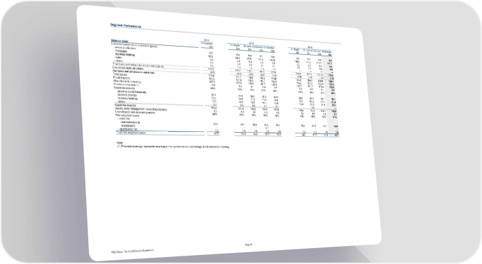 Segment Performance 2014 2015 2016 31 December 31 March 30 June 30 September 31 December 31 March 30 June 30 September 31 December Balance sheet £bn £bn £bn £bn £bn £bn £bn £bn £bn Loans and advances to customers (gross) - personal advances 6,5 6,4 6,4 6,1 6,0 6,0 6,0 6,0 6,0 - mortgages 95,5 96,0 97,6 101,2 104,8 108,0 111,4 114,7 117,1 - business banking 5,9 5,9 5,4 5,4 5,3 5,5 6,2 6,4 6,4 - cards 4,7 4,3 4,2 4,1 4,1 3,9 3,9 3,9 3,9 - others 1,5 1,5 1,5 1,5 1,4 -- -- -- -- Total loans and advances to customers (gross) 114,1 114,1 115,1 118,3 121,6 123,4 127,5 131,0 133,4 Loan impairment provisions (2,5) (2,4) (2,2) (2,0) (1,8) (1,6) (1,5) (1,4) (1,3) Net loans and advances to customers 111,6 111,7 112,9 116,3 119,8 121,8 126,0 129,6 132,1 Total assets 137,8 137,8 139,5 140,7 143,9 146,3 151,2 155,4 155,6 Funded assets 137,8 137,8 139,5 140,7 143,9 146,3 151,2 155,4 155,6 Risk elements in lending 3,6 3,4 3,1 2,9 2,7 2,4 2,3 2,1 2,0 Provision coverage (1) 69% 70% 72% 67% 69% 65% 66% 67% 65% Customer deposits - personal current accounts 34,4 34,6 35,2 36,3 37,2 38,8 39,3 40,7 42,1 - personal savings 76,3 76,4 77,3 77,4 78,9 78,7 80,2 81,1 81,4 - business banking 19,5 18,3 18,5 19,1 19,6 19,4 20,8 21,9 22,3 - others 2,4 2,3 2,2 2,1 2,1 -- 0,1 -- -- Customer deposits 132,6 131,6 133,2 134,9 137,8 136,9 140,4 143,7 145,8 Assets under management (excluding deposits) 4,9 4,9 4,6 4,3 4,3 4,2 4,1 4,3 4,2 Loan:deposit ratio (excluding repos) 84% 85% 85% 86% 87% 89% 90% 90% 91% Risk-weighted assets - credit risk - non-counterparty 29,0 28,1 26,8 25,4 25,4 26,9 29,1 24,1 24,8 - counterparty -- -- -- 0,1 -- -- -- -- -- - operational risk 7,6 7,8 7,8 7,8 7,9 7,8 7,9 7,8 7,9 Total risk-weighted assets 36,6 35,9 34,6 33,3 33,3 34,7 37,0 31,9 32,7 Note: (1) Provision coverage represents loan impairment provisions as a percentage of risk elements in lending. RBS Group - Q4 2016 Financial Supplement Page 25