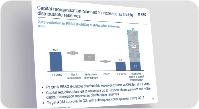 Capital reorganisation planned to increase available distributable reserves 2016 evolution in RBSG (HoldCo) distributable reserves ~38 (£bn) ~30 16.3 1.2 6.0 8.0 1.1 8.0 FY 2015 Tier 1 Write down Other(1) FY 2016 Illustrative redemptions of investment benefit of capital reorganisation FY 2016 RBSG (HoldCo) distributable reserves £8.0bn vs £16.3bn at FY 2015 Capital reduction planned to reclassify up to ~£25bn share premium and ~£5bn capital redemption reserve as distributable reserves Target AGM approval in Q2, with subsequent court approval during 2017 59 (1) Includes £1.2bn to retire the Dividend Access Share