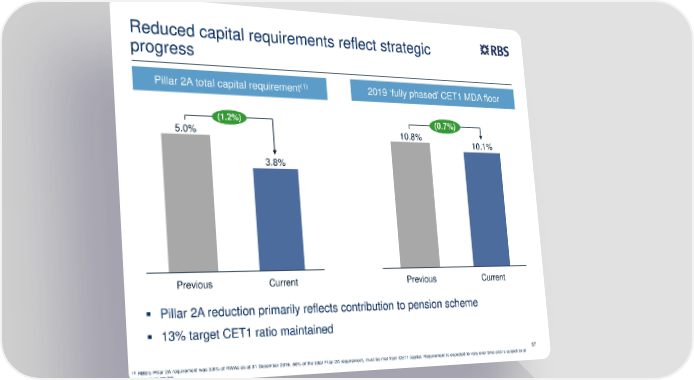 Reduced capital requirements reflect strategic progress Pillar 2A total capital requirement(1) 2019 ‘fully phased’ CET1 MDA floor (1.2%) (0.7%) 5.0% 10.8% 10.1% 3.8% Previous Current Previous Current Pillar 2A reduction primarily reflects contribution to pension scheme 13% target CET1 ratio maintained 57 (1) RBS’s Pillar 2A requirement was 3.8% of RWAs as at 31 December 2016. 56% of the total Pillar 2A requirement, must be met from CET1 capital. Requirement is expected to vary over time and is subject to at least annual review.