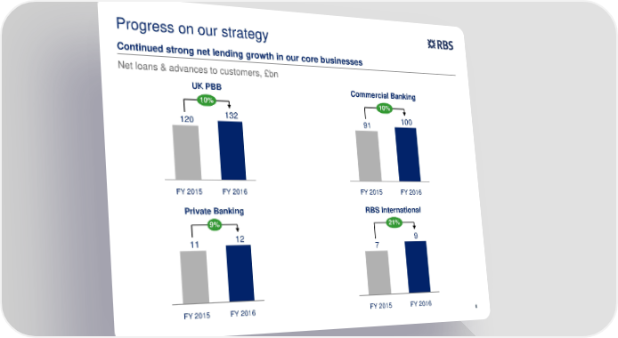 Progress on our strategy Continued strong net lending growth in our core businesses Net loans & advances to customers, £bn UK PBB Commercial Banking 10% 10% 120 132 91 100 FY 2015 FY 2016 FY 2015 FY 2016 Private Banking RBS International 9% 21% 11 12 9 7 FY 2015 FY 2016 FY 2015 FY 2016 6